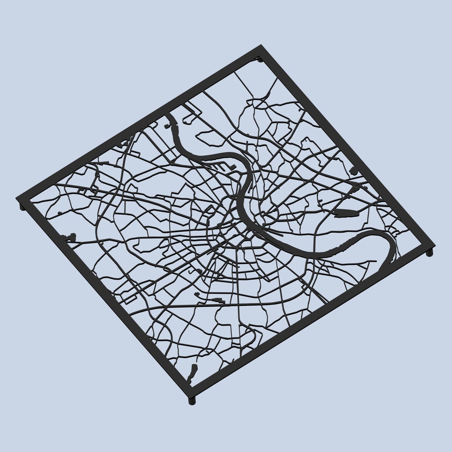 An erster Stelle steht die Auswahl der geographischen Form, die wir in Metall bannen wollen. Wenn wir uns (ggf. mit Ihrer Hilfe) für ein Motiv entschieden haben, erstellen wir eine digitale Version des Musters. Dabei steht die ästhetische Wirkung im Vordergrund – nicht alle Details können abgebildet werden, nicht alle Elemente einer Landkarte können überlagert werden. Zugleich geben die Modelle aber auch feinste Details wieder.